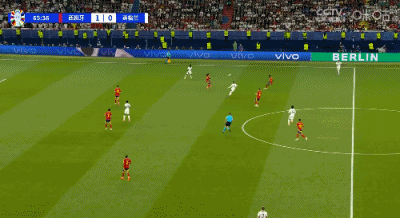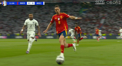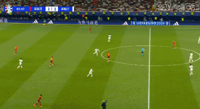 但西班牙的中後場出球羣+雙飛翼調整能力驚人,拉波特開場就發現羅德里被圍,於是代表西班牙後場,帶球直逼英格蘭腹地。莫拉塔大幅度回撤拿球,填補西班牙的出球。