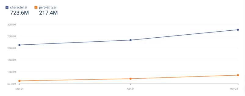 Character.ai 和 perplexity.ai 的流量對比|圖片來源:Similarweb