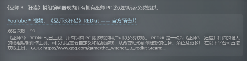 今年5月,《巫師3》更新了官方MOD工具REDkit模組編輯器,CDPR大幅簡化了MOD製作流程,為所有玩家提供了一套與遊戲開發者們使用的開發工具幾乎相同的MOD編輯器,希望藉此鼓勵更多玩家積極製作《巫師3》MOD。