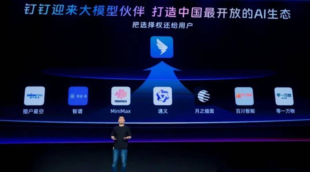 最近這次,釘釘則進一步擴大合作,引入了包括MiniMax、月之暗面、智譜AI、獵户星空、零一萬物和百川智能在內的六家本土頂尖大模型公司,力圖構建一個極為開放的AI生態系統,將選擇權交回用户手中。