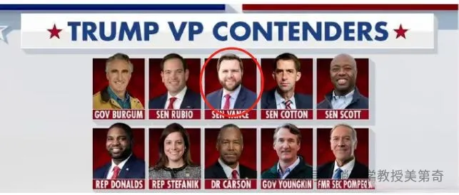 昨天特朗普沒有在黨大會上發言,但是他官宣了自己的競選搭檔,來自俄亥俄州的“草根勵志”青年,從基層爬上來的JD·萬斯。