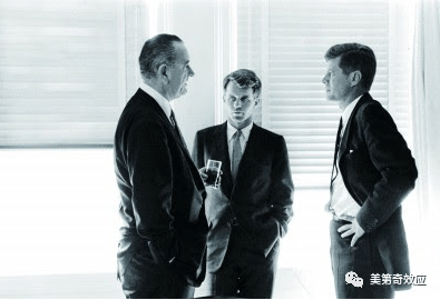 副總統林登約翰遜(左)司法部長肯尼迪(中)和肯尼迪總統(右)長期不合。富家子出身的肯尼迪對頗有點草寇氣的約翰遜很看不上眼,甚至説過:我和林登·約翰遜的區別是,雖然我們兩人都想當總統,但我並沒有為此殺人。肯尼迪兄弟倆均死於暗殺,怕是一語成讖