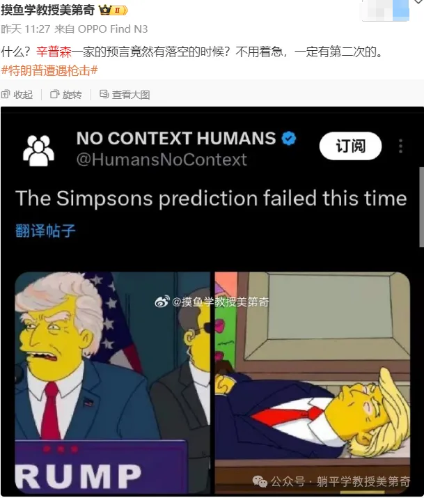以預測準確著稱的辛普森一家動畫,預測準了特朗普當總統,卻在特朗普被槍擊這事上出了錯,不用着急,肯定會有第二次的。