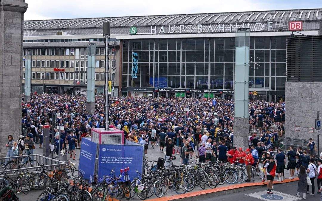 凌晨漢堡市中心的火車站出現了大量球迷滯留的情況,且現場的工作人員無法向球迷們給出明確的解決方案。當我詢問一位賽事志願者時,她的回答是**「We are pretty chaotic, we don’t have plan.(我們真的挺混亂的,我們沒計劃)」**。
