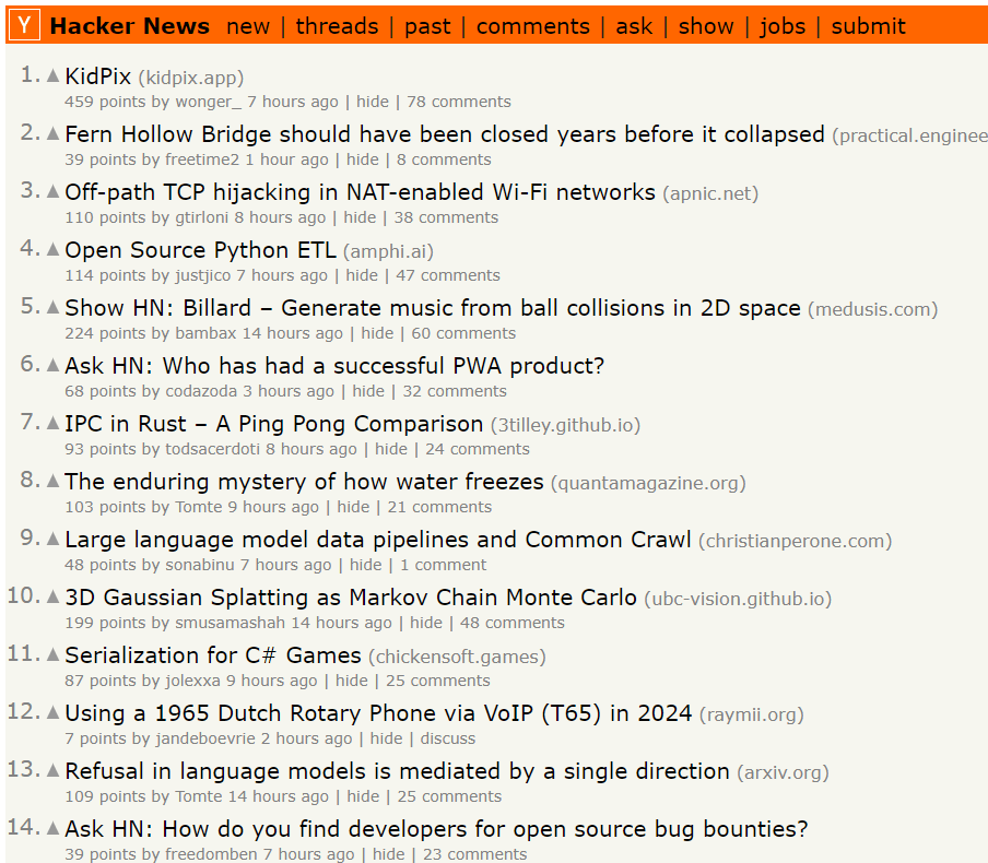 熟悉的同學已經看出來了,它就是大名鼎鼎的Hacker News。