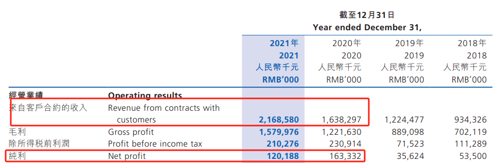 具體來看,2021年度公司營收21.69億元,同比增長32.37%;但是淨利潤僅為1.20億,同比下降26.41%。
