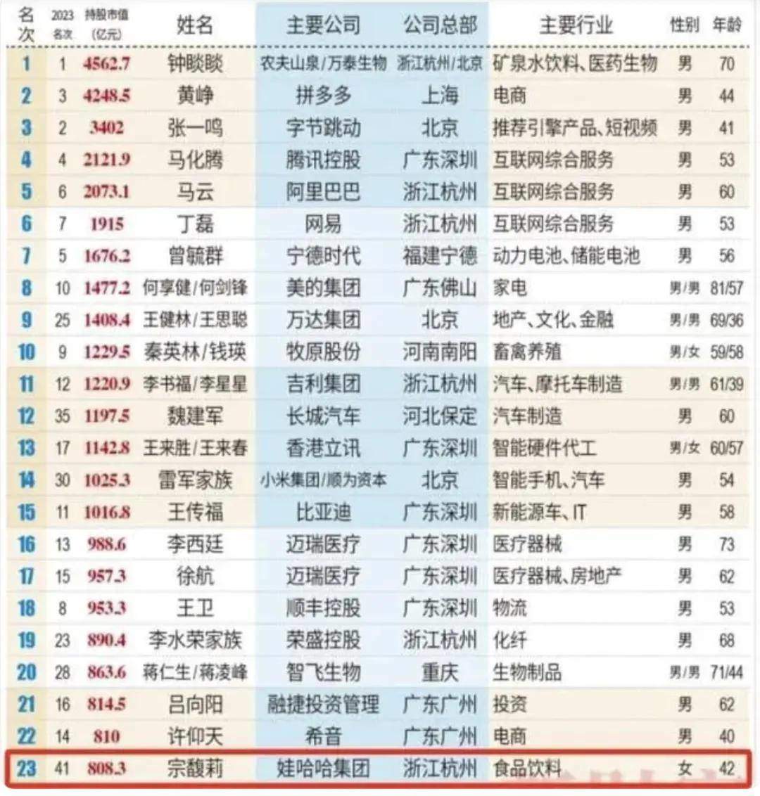在6月12日發佈的《2024新財富500富人榜》中,宗馥莉以808億元的身價首次登頂中國女首富寶座。