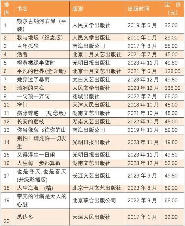 數據顯示,2023年全年圖書銷售榜榜首是《額爾古納河右岸》,新書榜榜首則是《相信》。短視頻、直播帶貨,已經成為第二大圖書銷售渠道。據北京開卷發佈的2023年圖書零售市場年度報告顯示,2023年中國圖書零售市場碼洋規模同比增長率由2022年的負增長轉為正向增長,同比上升了4.72%,碼洋規模為912億元。
