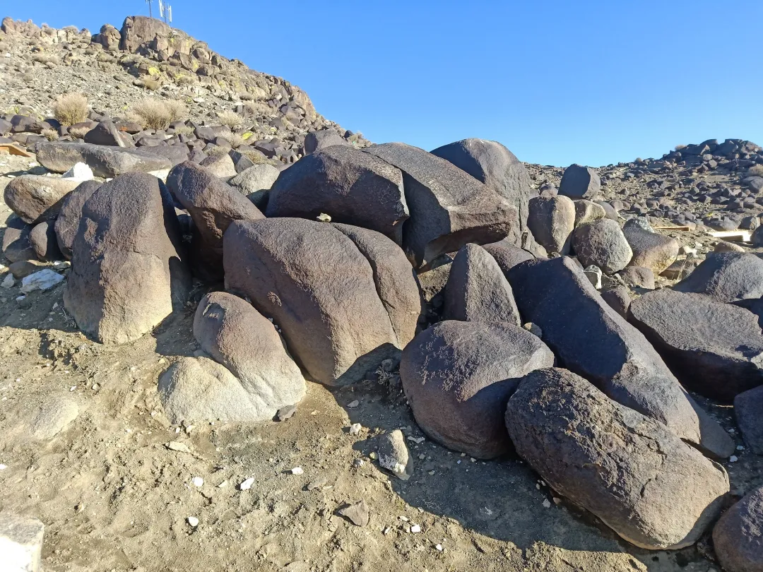 黑石山,因山上鑲嵌堆積着許多形態各異的黑色石頭而得名。有些黑石表面還遺留有清晰的巖刻畫,在時間的長河中變成了無解的神秘符號,黑石互相碰撞會發出神秘的聲音,彷彿在與歷史對談。
