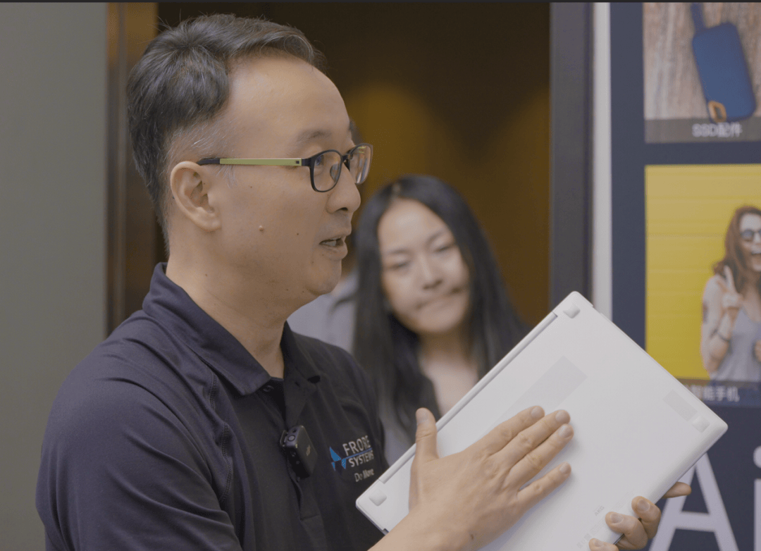 因為我對他們這個散熱芯片很感興趣,所以在 Frore Systems 的展台跟他們聊嗨了,聊到最後它們乾脆邀請我們一起改造了一台新筆記本。