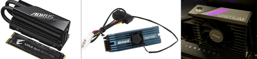 比如用在 PCIe 5.0 的固態硬盤上——眾所周知,最新 PCIe 5.0 的固態硬盤會有過熱掉速的問題,於是催生出了一堆抽象設計。。。