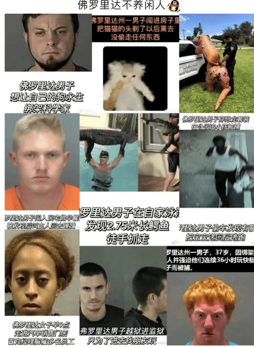 時間一長,形成段子傳播,造就出了“佛羅里達不養閒人”的網絡熱梗。這對小編及同行而言,我們又不是新聞記者,這些梗都是我們筆下絕佳的素材。