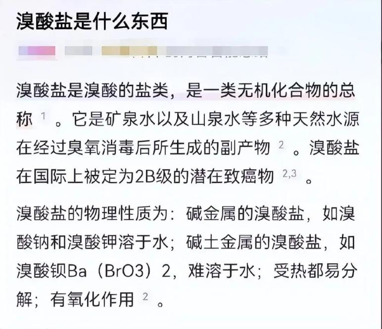 這是一種化學物質,但並不常見於自然界,而是在工業生產中產生。目前常見的瓶裝水生產線,通常採用臭氧殺菌,這一過程中,水體中就會產生各種溴酸鈉、溴酸鉀等溴酸鹽類物質。