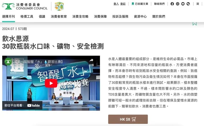就此,香港消委會將該樣本改列為一獨立類別“飲用天然水”並重新評分。重新評分後,該樣本的整體表現由4.5星調整至5星。