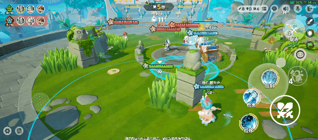 另一方面,由於戰場是帶有草叢和各類障礙物的複雜場景,加上很多投射類和位移技能都無法穿越牆體,“峽谷3v3”是一個完完全全的3D遊戲——玩家需要隨時移動鏡頭來避免被障礙物“卡視角”,釋放技能時也需要注意和敵人的空間距離與角度。極端情況下,一些交互動作甚至會被Z軸位移規避掉,實現傳説中的“跳起躲冰環、趴下躲風車”。