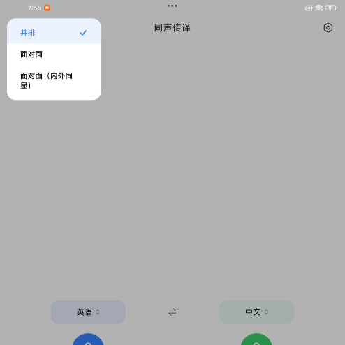 誒,如果我有 MIX Fold 4 的話,只要在 MIX Fold 4 上用小愛翻譯的同聲傳譯時,點一下左上角的這個按鈕,再選擇 “ 面對面( 內外同顯 ) ” ——