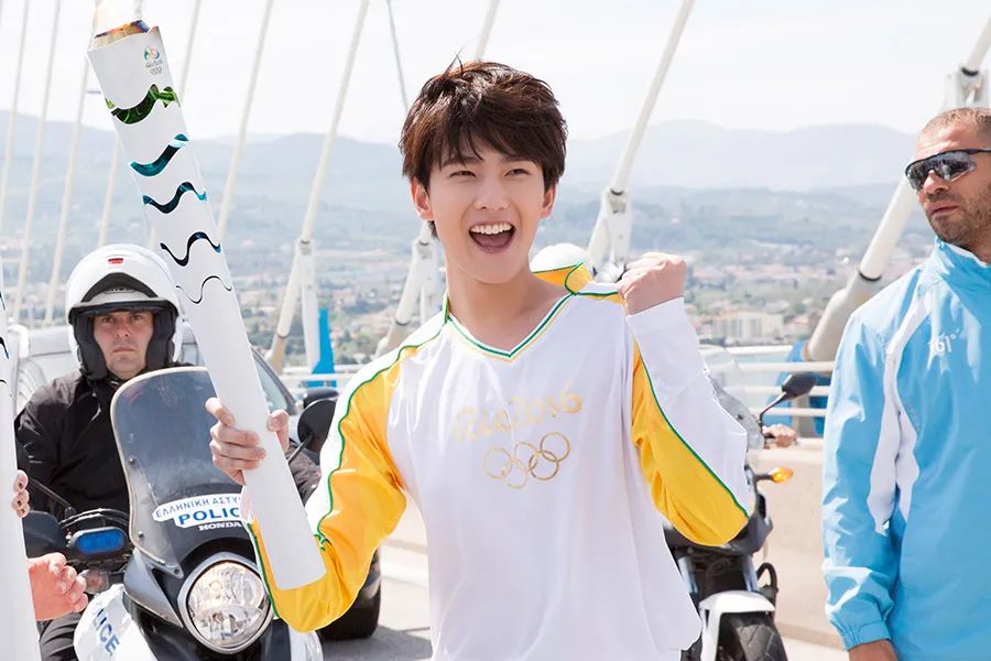 ▲有一説一,里約這款火炬也挺好看的,圖為中國演員楊洋在傳遞火炬