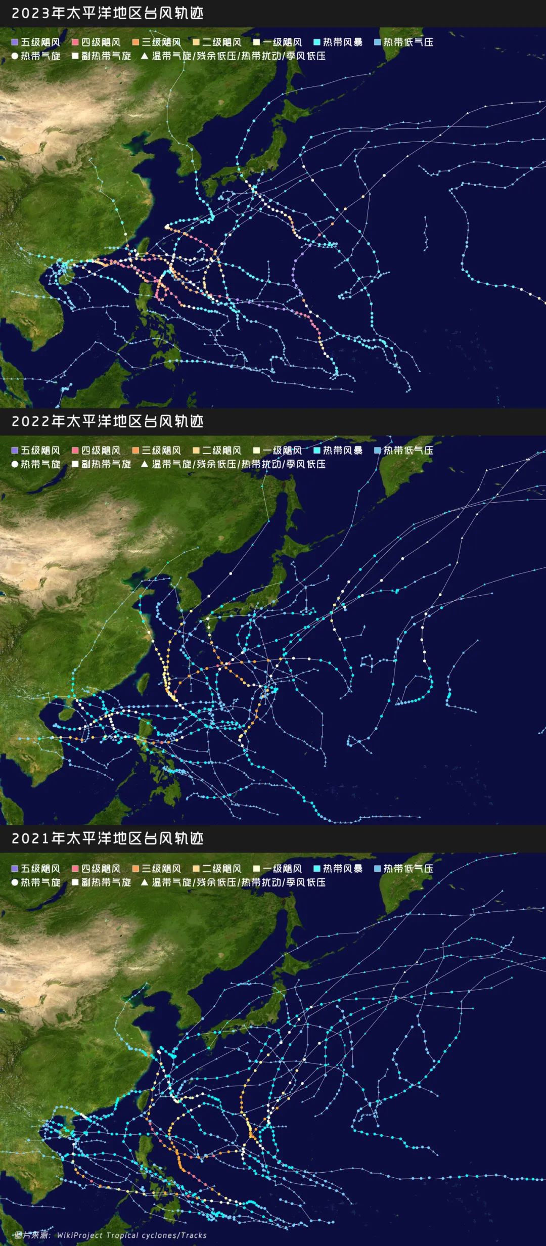 會發現他們的起點基本都在“從菲律賓以東到馬紹爾羣島的海域上”,以及,他們往往是一個接一個來,可能兩三個同時形成,比如最近的蘇拉、達維和海葵,但很難更多。