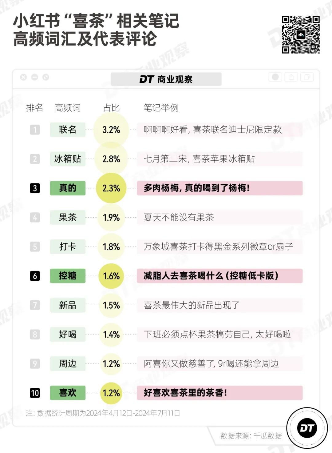 由此可見,一直秉承健康標準的喜茶,和年輕人對奶茶的期待,是雙向奔赴的。