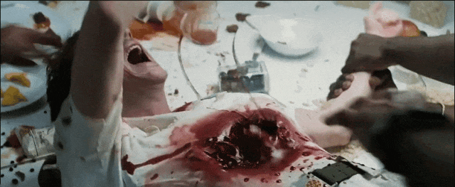由此誕生的異形從人體破胸而出的場面,也成為八十年代觀影人的噩夢。
