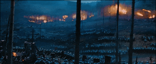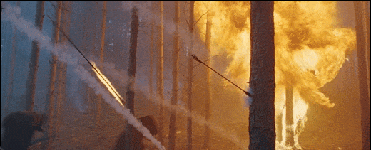 兩軍交鋒,萬箭齊發,火燒針葉林。
