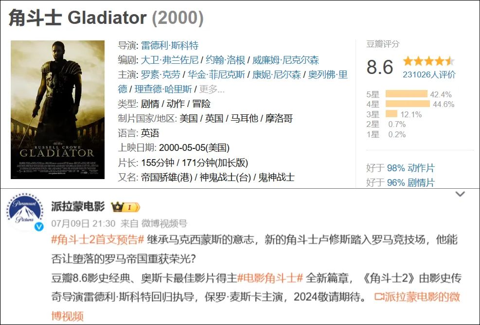 只是看了一眼傑羅姆的油畫《角鬥士》,連劇本都沒讀過,他就跟編劇説:
