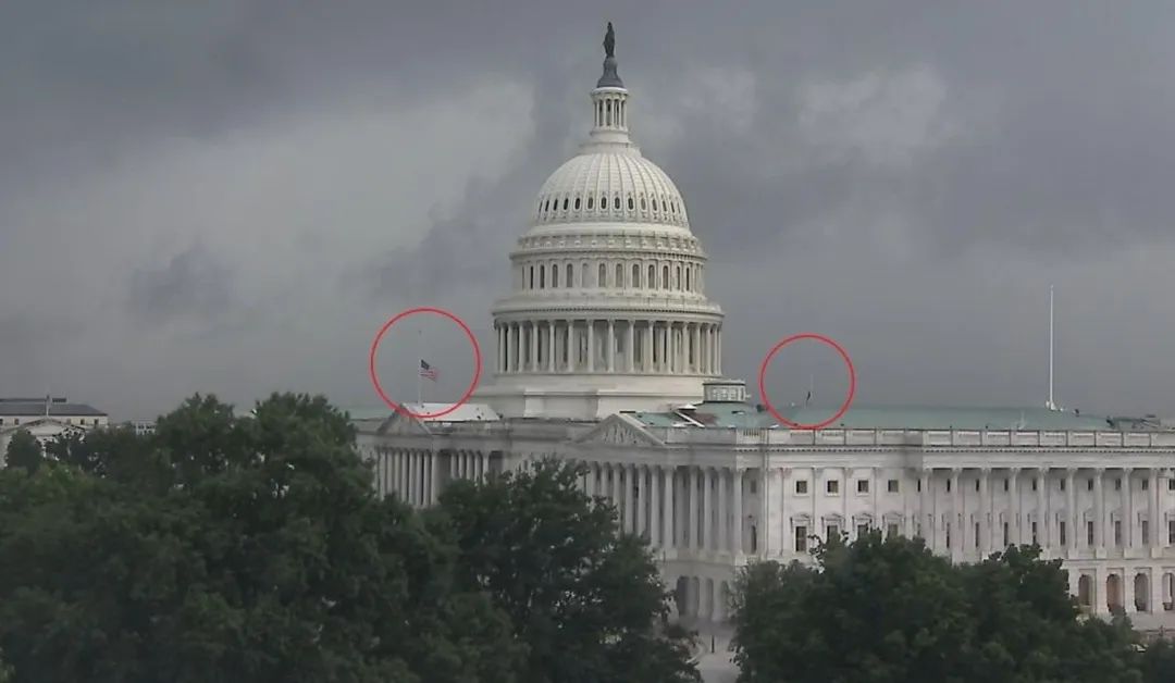 接着,今天還有人發現國會山降了半旗…….