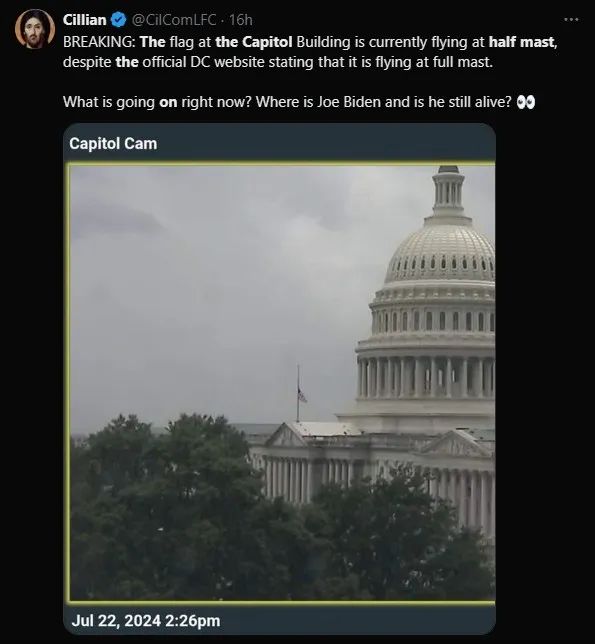 國會山降半旗,各種謠傳拜登沒了?各國網友陰謀論上頭... 真相來了!_風聞