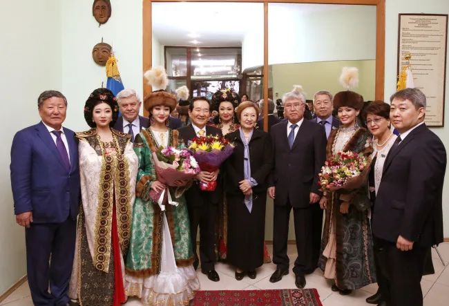 ▲韓國領導人與哈薩克斯坦的高麗人合影