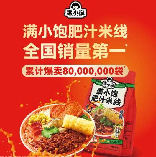 此外,數據還顯示,**滿小飽短短几年時間,就完成銷售額1-10億爆發式增長。**其中最受歡迎的明星大單品「滿小飽肥汁米線」已累計爆賣80,000,000袋。