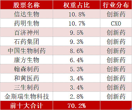 港股通創新藥ETF(159570)標的指數前十大持倉股和對應權重如下:
