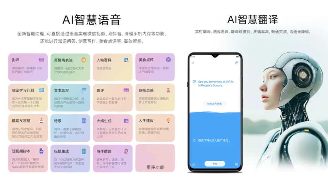 中興遠航3D還擁有一系列基於AI大模型的強悍功能。全新智能助理可直接通過語音實現微信視頻、刷抖音、清理手機內存等功能,還能進行知識問答、創意寫作、美食點評等,高效智能;AI智慧翻譯支持面對面聊天隨説隨譯,暢通交流,溝通無障礙;AI魔法消除則支持智能消除照片中的多餘內容,瞬間讓照片乾淨整潔、煥然一新。