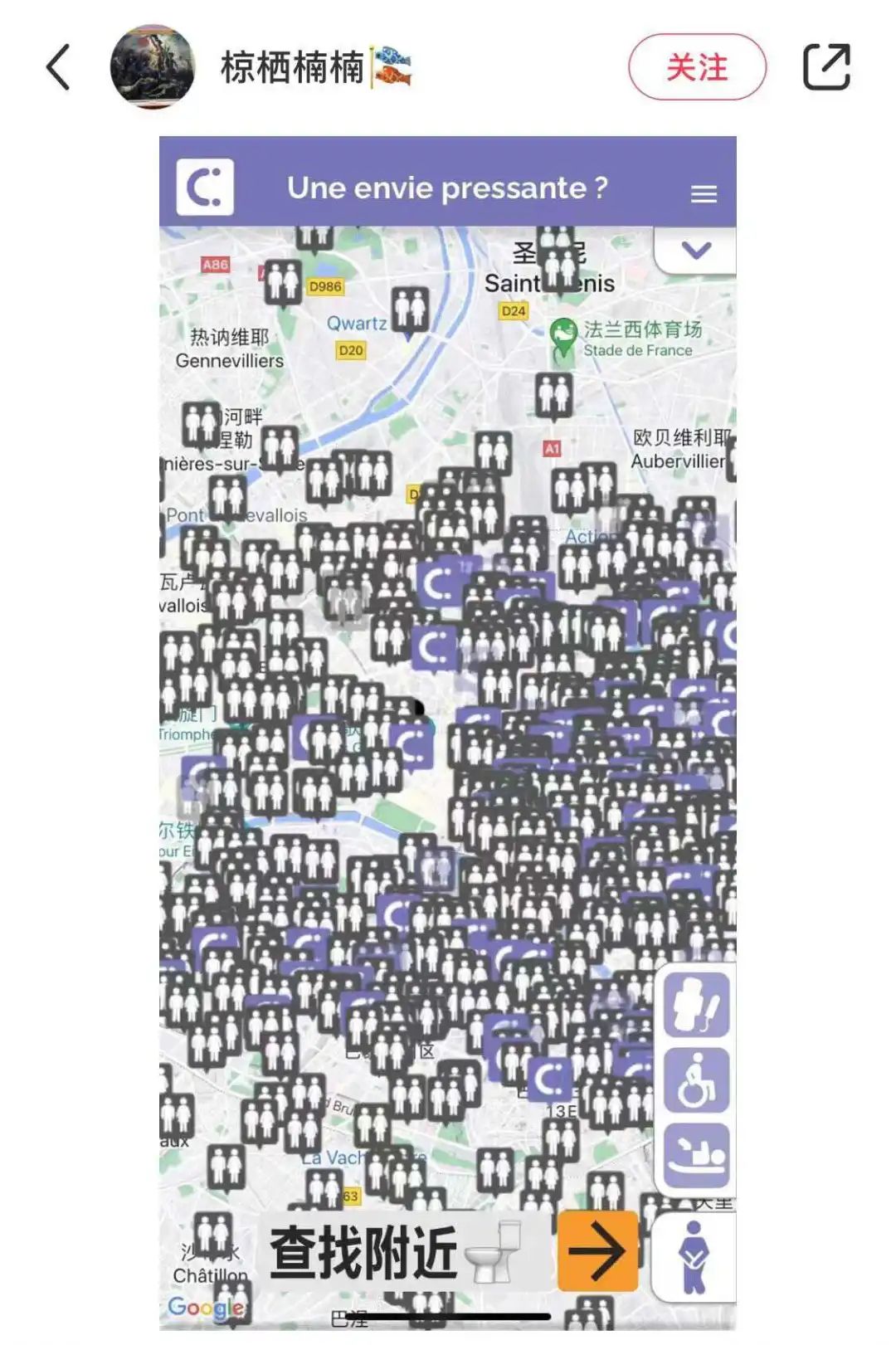 有朋友深受在巴黎上廁所的地獄模式之苦,於是找到了神仙App“Ici Toilette”讓大家免受廁所焦慮。
