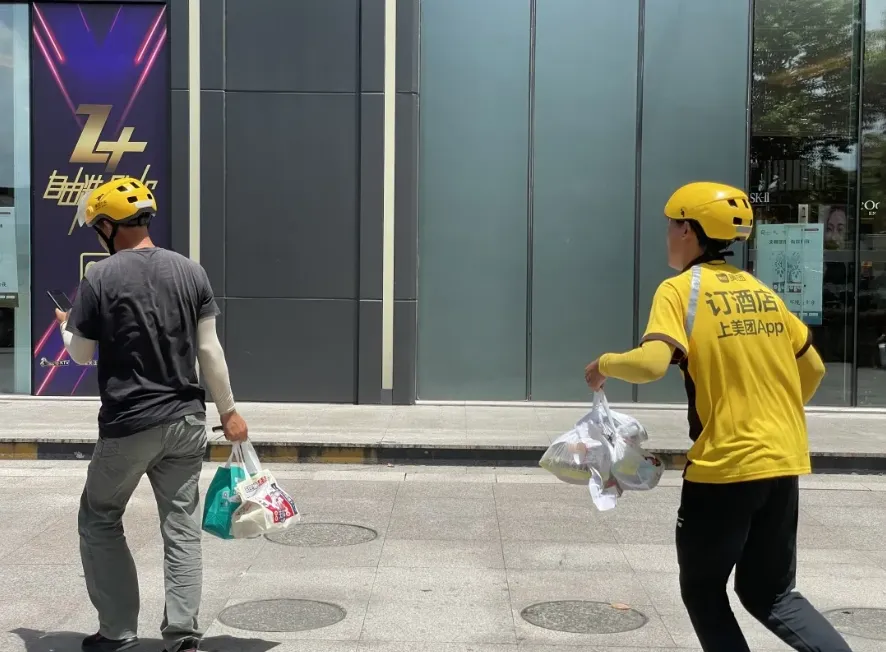 “202號”,張樂和麻辣燙老闆形成了一種默契,進店後快速走到取餐枱前報號取餐,商家話不多,用眼神和手上的一個動作示意商品所在的位置。他似走似跑,幾十秒後,這份剛出鍋的夜宵,和像“風”一樣的張樂共同經歷着顛簸和賽跑。