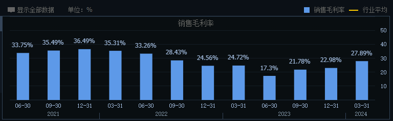 另一方面,隨着存貨壓力的緩解,韋爾股份的銷售毛利率也出現了觸底回升。數據顯示,2023年Q2-2024年Q1,韋爾股份銷售毛利率分別為17.3%、21.78%、22.98%和27.89%,連續四個季度實現環比提升。