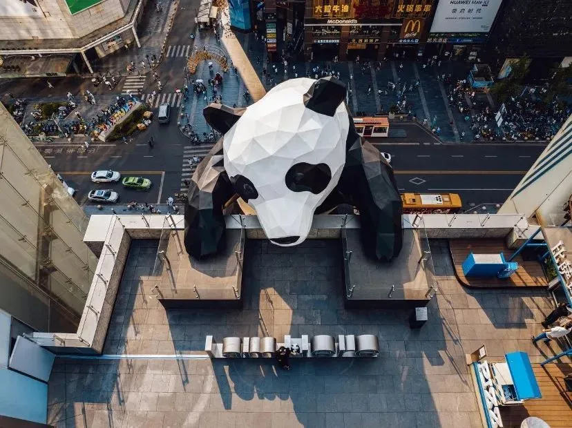 (春熙路是成都最繁華的地段,熊貓成為了熱門打卡地。圖源:視覺中國)