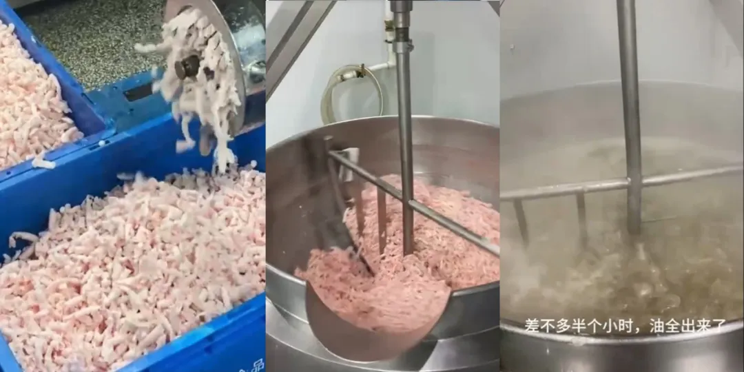 他會在當地採購豬板油,“都是有檢疫證明的”,然後讓一家有生產資質的加工企業煉油,煉油的視頻、圖片會發布在網上。