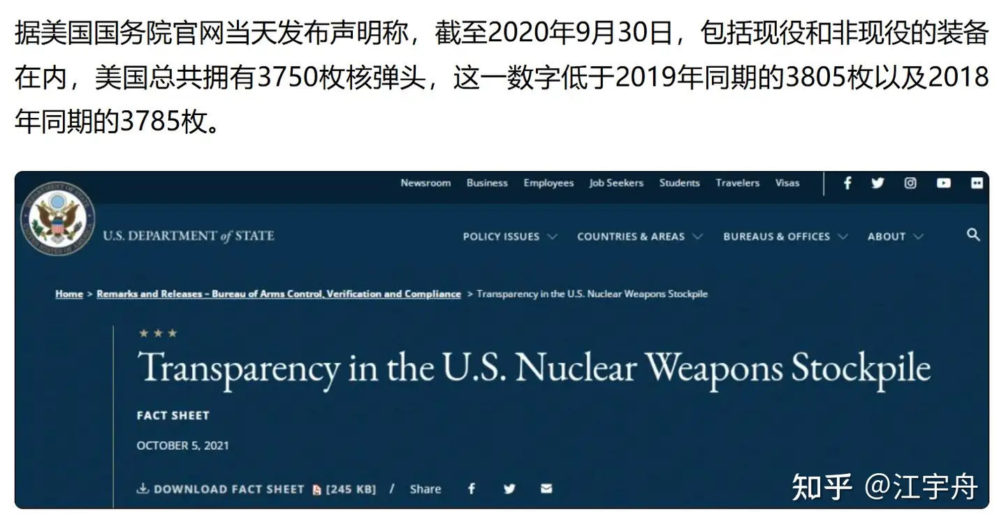 仍在幾天前,那邊又一次公佈了自己核彈頭的數量,此時咱都知道它們的常規軍力已在衰朽,以至於對拖鞋軍的闢謠都做不好(時隔近4年,美國公佈核彈頭總數 (thepaper.cn))。