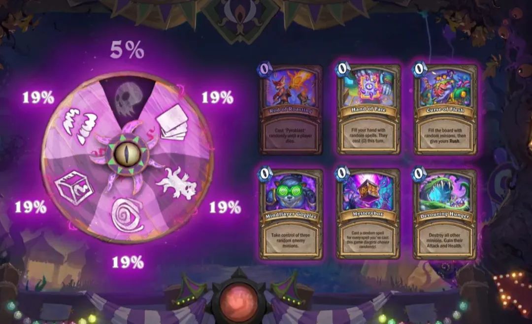 從爐石時代開始,隨機性一直都是BB團隊在設計卡牌時不願割捨的一個元素。它在為遊戲增加不確定性的同時,也給了苦等“説書”的對手一點驚喜的調劑——有時候也會是驚嚇。但不論如何,這種隨機都是在一方玩家完全不能操作的情況下,遊戲用機制儘可能地給玩家提供些值得關注的反饋。