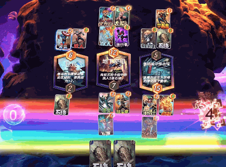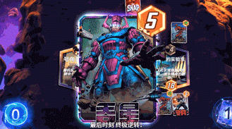 在《漫威終極逆轉》裏,影響這些策略的因素有很多。三條路的地形每局遊戲都會隨機產生不同的效果,有的卡能延長一個回合或是倒退一回合,甚至“行星吞噬者”這張卡還能將三路比大小直接變成一路——這已經完全是另一個遊戲了。
