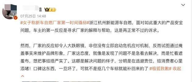 也有網友表示:「面對如此重大的產品安全問題,車主的第一反應是尋求廠家的解釋與幫助,這是再正常不過的訴求。然而,廠家的反應卻令人大跌眼鏡,非但沒有立即啓動危機應對機制,反而試圖通過掩蓋事實來維護品牌形象」