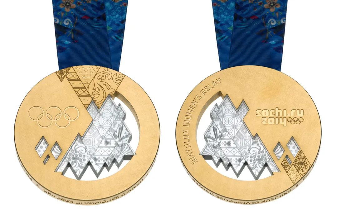 ▲2014年俄羅斯索契冬奧會獎牌,中間加入了半透明的聚碳酸酯(一種塑料),看起來還是挺漂亮的