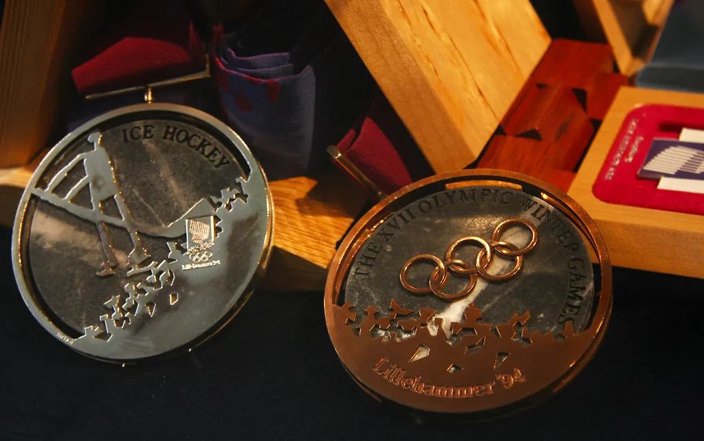 ▲1994年挪威利勒哈默爾冬奧會獎牌,中間加入了代表挪威特色的花崗岩石。