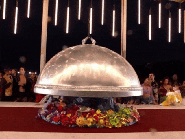 全場表演中,最震撼我的是這個鏡頭…當巨大的餐蓋揭開,一位中年藍精靈藍男子開始了演唱。據説cos的是酒神狄奧尼索斯,是在用歌聲呼喚世界和平。