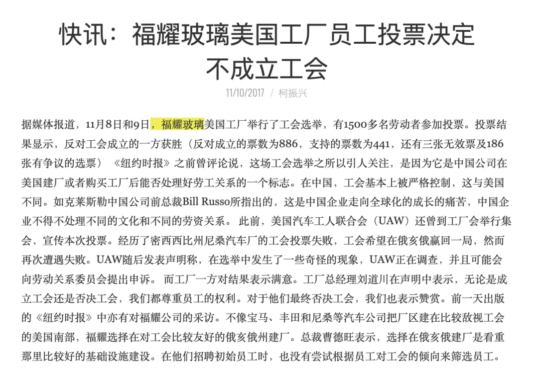 突發,福耀玻璃美國28個地點被搜查,"不建工會"惹麻煩了?_風聞
