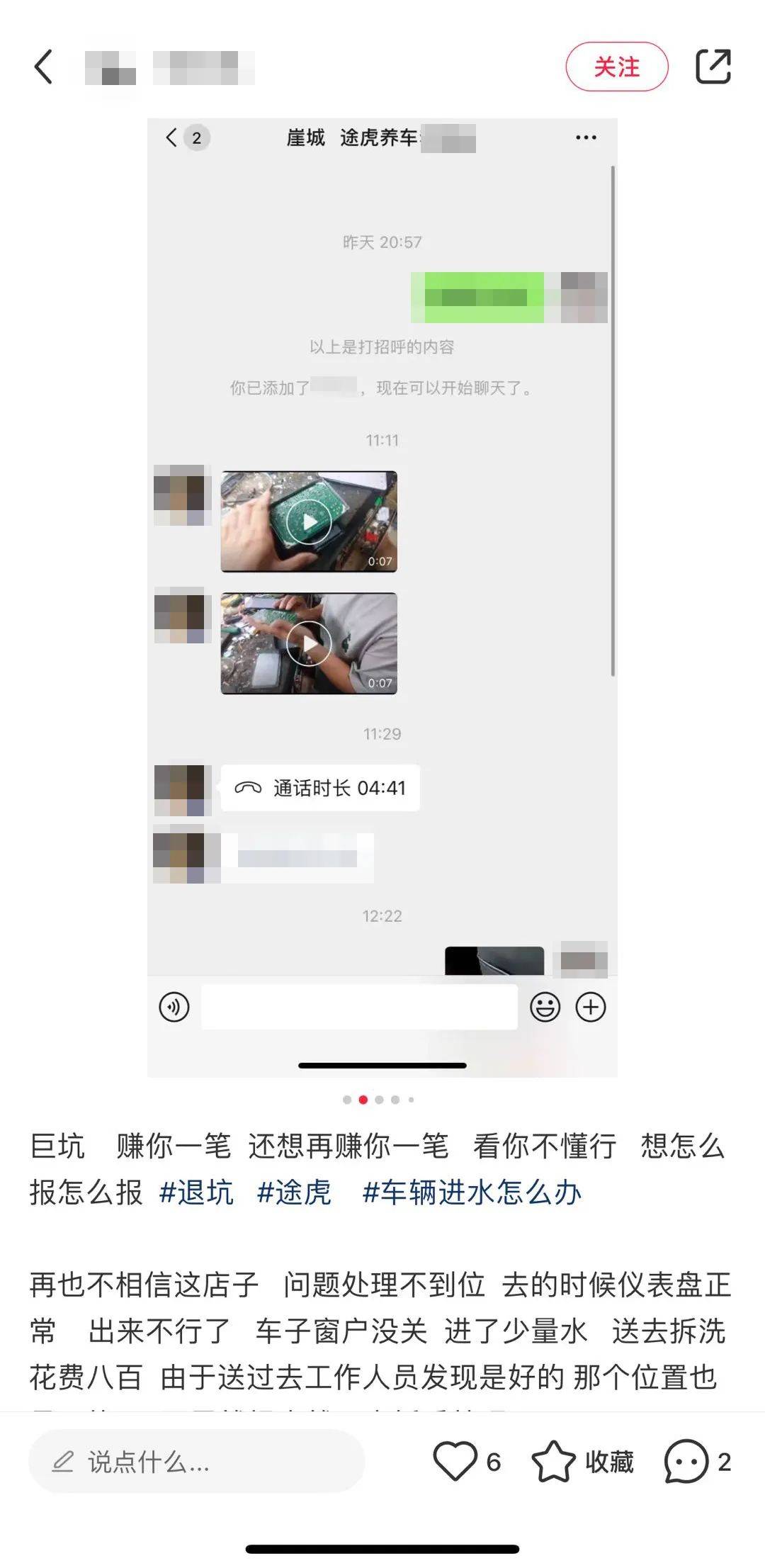 此前,就有網友爆料同樣車輛在途虎養車加盟工廠店遭受不同待遇的新聞。彼時,途虎養車就在回應中承認,門店在回答客户諮詢的過程中,確實存在誤導客户的行為,並且在維修過程中為客户提供了錯誤的維修方案。