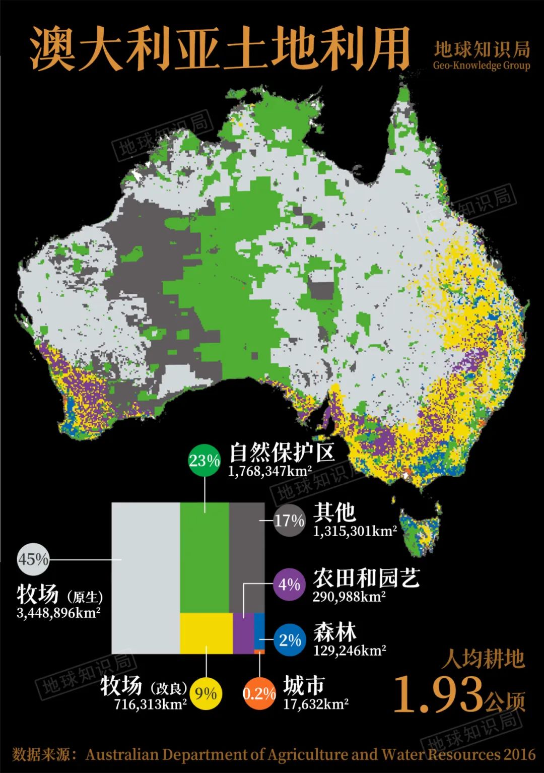 在這背後,是澳大利亞世界第一的人均耕地,高達1.93公頃,是我們的19倍。