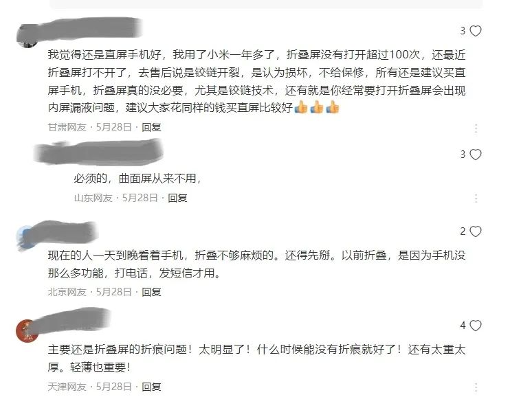 “摺疊屏實在是太脆了”,成為很多用户吐槽的重點。