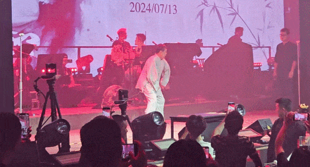 凌晨一點半,馬保國站在某夜店的舞台上。