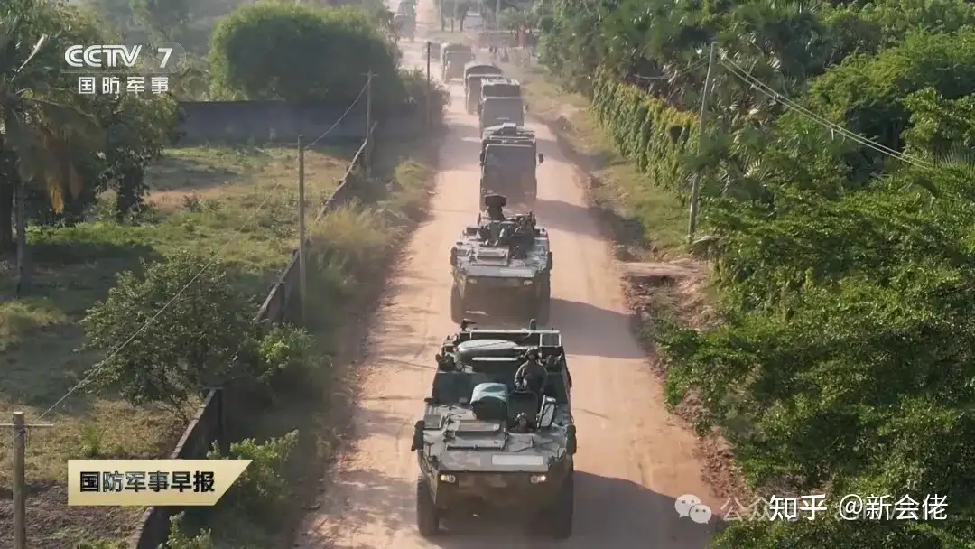 從視頻裏的誓師大會場看,中部戰區82集團軍出動的至少有一個合成營。他們應該是走海路去的坦桑尼亞。而前面所説的信息通信、醫療分隊可能是走空運去的。因為從一張向馬坪加機動的照片裏看有通信車。